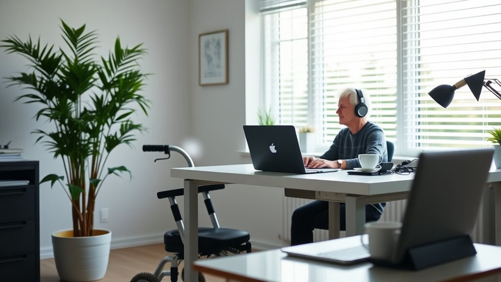 You find that screen readers and speech recognition are most effective for remote work. Screen readers help you access digital content by converting text into speech, making it easier to navigate. Speech recognition allows you to control your device and dictatе text hands-free. These assistive technologies increase your productivity and independence, ensuring you can work comfortably from home. Combining them creates a seamless, accessible remote work experience tailored to your needs.