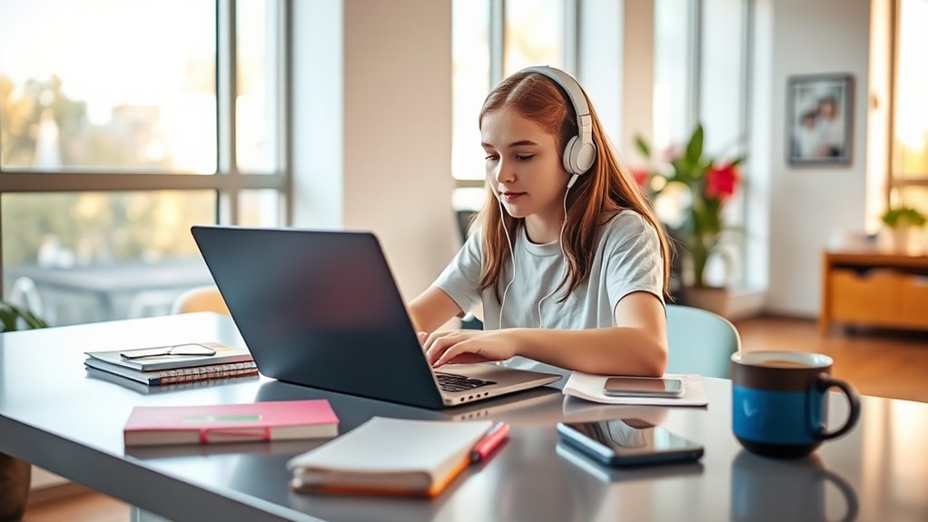 Balancing online work with school is like walking a tightrope—you need steady steps. You can do this by practicing effective time management, setting clear schedules, and prioritizing tasks. Don’t forget to lean on parental support; they can help you stay organized and motivated. Keep a calendar, break tasks into manageable chunks, and communicate openly about your workload. This way, you’ll stay on track without sacrificing your education.