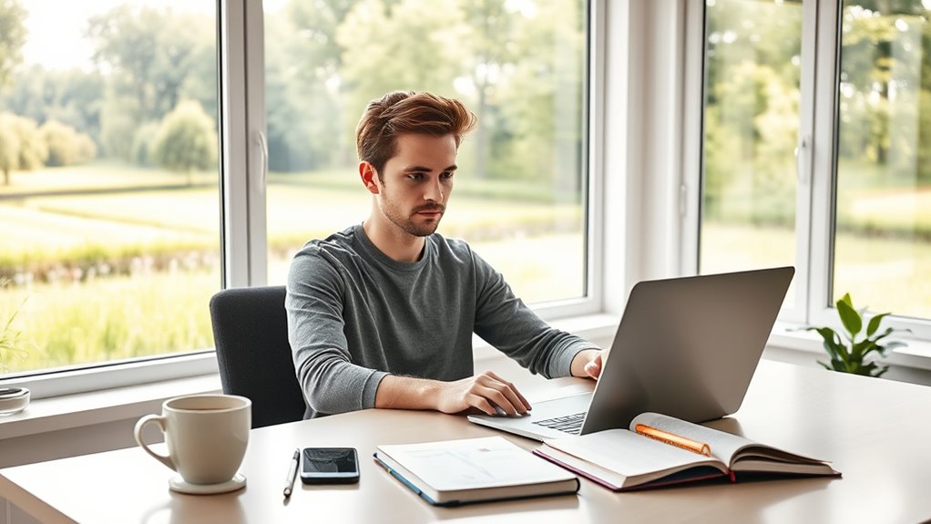 As a German student or young professional, you can explore flexible remote jobs like freelancing, language tutoring, or online work platforms such as Upwork or Verbling. These options let you manage your schedule, build skills, and earn extra income without leaving your home. Whether you’re teaching German or offering other talents, remote work can boost your experience and independence. Keep exploring to discover more tips and opportunities tailored for you.