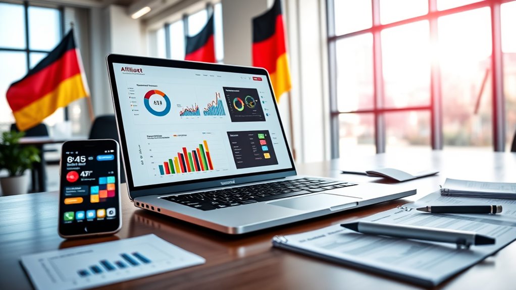 In the German marketplace, you can tap into lucrative affiliate marketing by partnering with local influencers who have strong German audiences, boosting trust and engagement. Mobile app promotions are also highly effective, especially when optimized for local preferences like privacy and security. Focus on authentic collaborations, clear messaging, and targeted advertising to maximize your reach. Keep exploring, and you’ll discover even more strategies to thrive in Germany’s vibrant digital landscape.