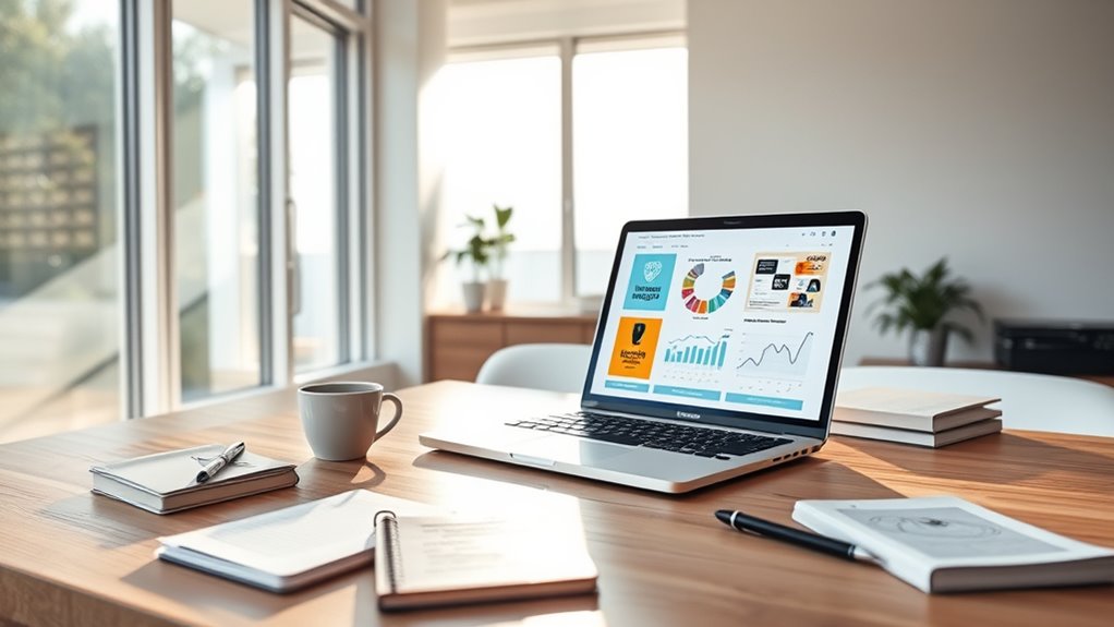 Using AI to generate book blurbs and marketing copy lets you craft targeted, compelling content quickly. It analyzes genre trends and audience data to create descriptions that resonate and stand out. AI also helps personalize messages for different reader segments, increasing engagement. Plus, you can test and refine multiple versions to find what works best. Keep exploring how this smart tool can streamline your promotional efforts and boost your book’s visibility.