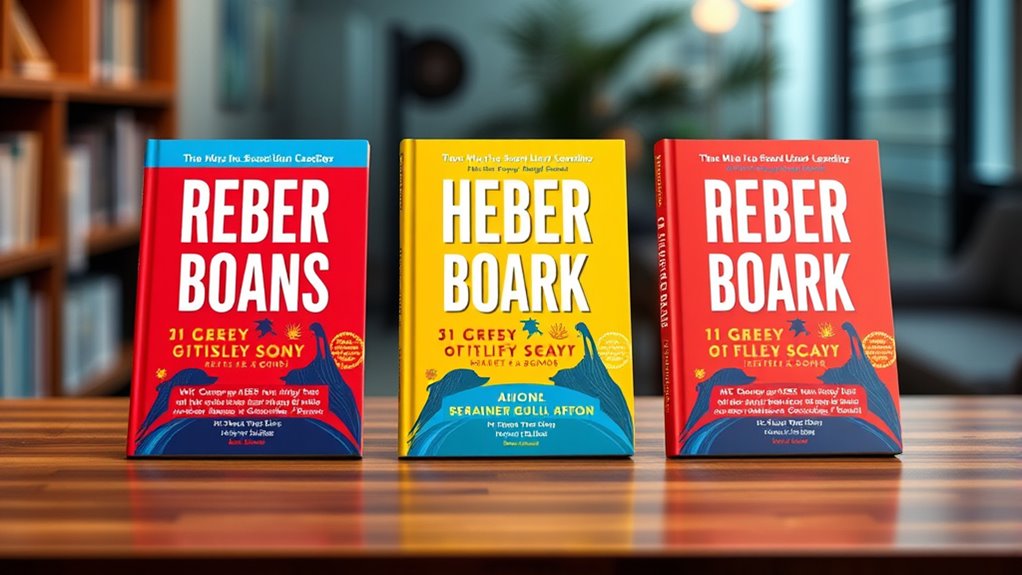 Think of your series like a symphony; the right color schemes are your instruments creating harmony. Use color psychology to evoke emotions—calm blues for trust, vibrant reds for energy. Stick to a consistent palette across covers to guarantee visual harmony, making your series instantly recognizable. When you choose colors thoughtfully, your covers will resonate together, enticing readers to buy the set and experience the full story.