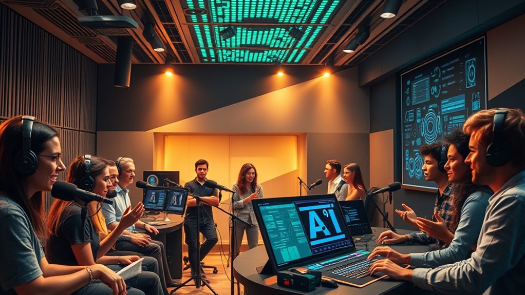Ultimately, choosing between voice actors and AI narration is like selecting a brushstroke or a pixel—both shape your story’s soul. Voice actors bring human warmth, nuance, and emotion, like a heartbeat in every word. AI offers efficiency and consistency, like a steady tide shaping the shore. Your decision reflects what you value most: the raw human spirit or the relentless march of progress. Whichever path you take, remember, your story’s true power lies in the connection you forge.