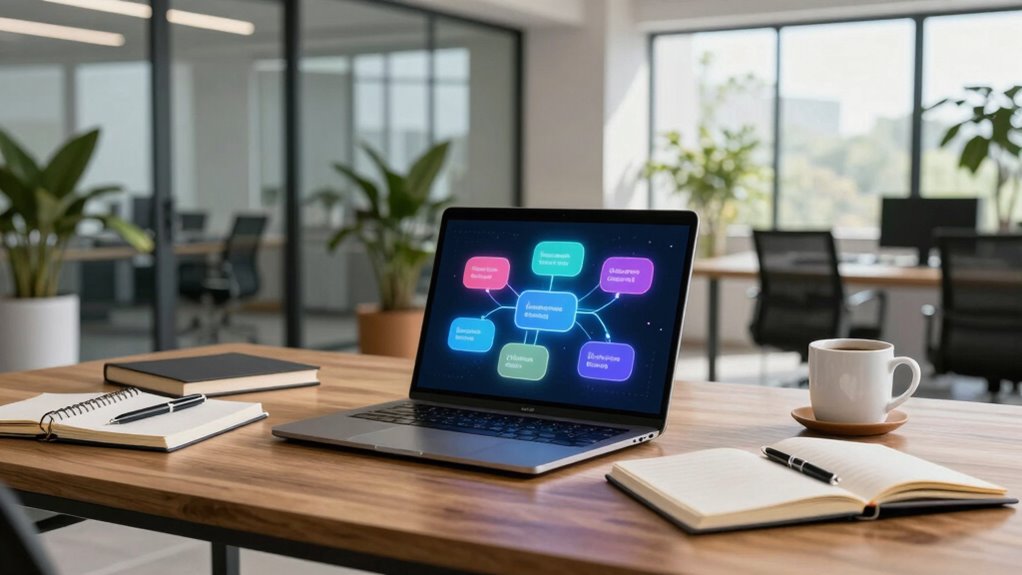 You measure your topic clustering success by analyzing your content hierarchy’s impact on traffic and engagement. Check if your search rankings improve for targeted keywords, which indicates your keyword density strategy is effective. Use analytics tools to track organic traffic growth, bounce rates, and time on page. These metrics reveal if your strategic internal linking and well-structured clusters are boosting visibility and guiding visitors through your content hierarchy seamlessly.