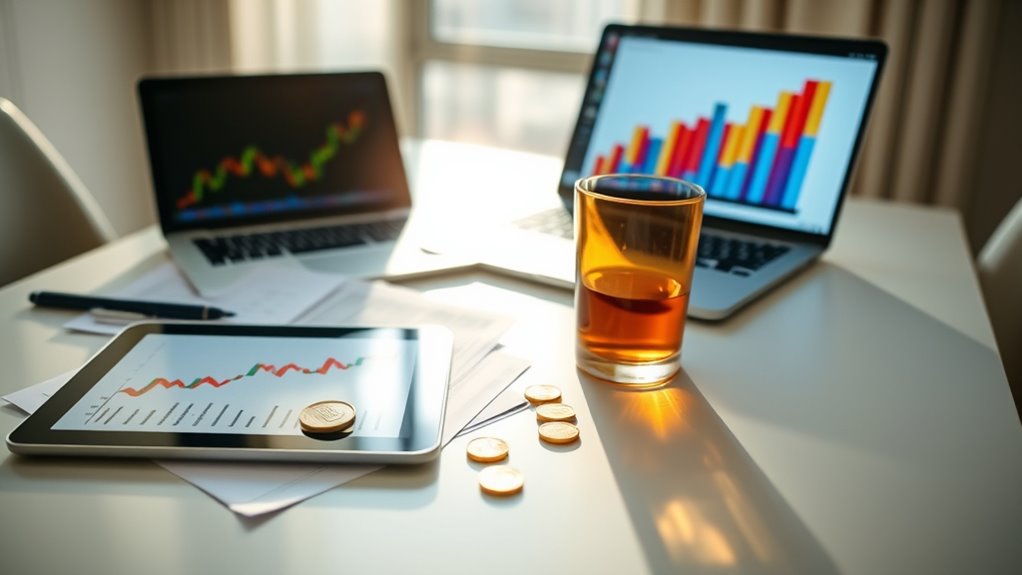 You should review and rebalance your investment portfolio at least once a year, or more often if market conditions change considerably. This helps with risk management and guarantees your diversification strategies stay aligned with your goals. Regular check-ins allow you to adjust for any shifts in asset performance, maintain your desired risk level, and optimize returns, keeping your investments on track for long-term growth.
