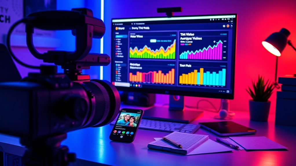 You can interpret audience demographics effectively by analyzing audience segmentation data and demographic trends. Look for patterns in age, gender, location, and interests to understand who engages most with your content. This insight helps you tailor your videos to match your audience’s preferences, increasing engagement. Keep track of shifting demographic trends over time to adjust your strategy accordingly, ensuring your content remains relevant and appealing to your target viewers.