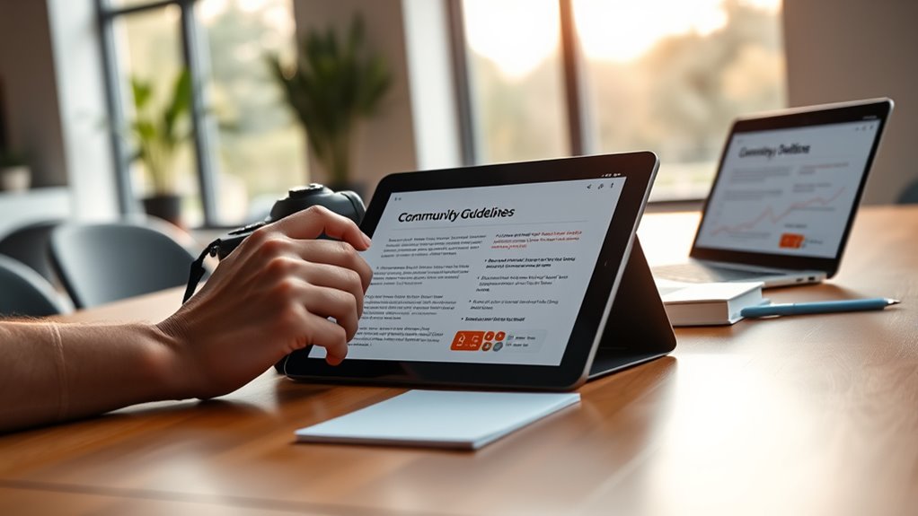 Like a chameleon changing colors, platform-specific policies vary widely, making it essential to understand each one. You’ll find that guideline consistency differs across platforms such as YouTube, TikTok, or Facebook, each with its own rules. To stay compliant, you need to regularly review and adapt your content to meet these unique standards, ensuring you don’t accidentally violate policies or risk demonetization.