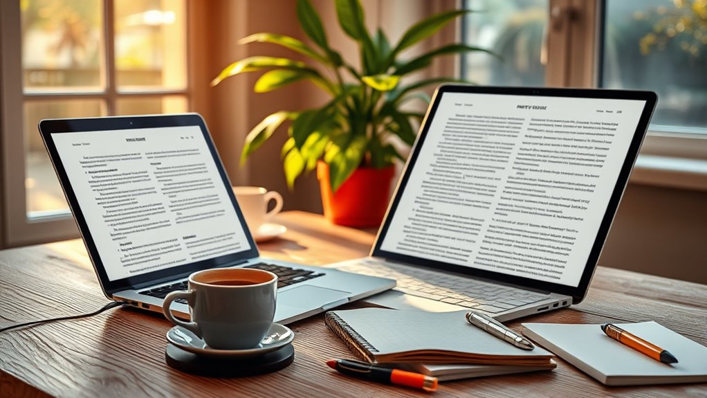 To make your long-form content more engaging, you should incorporate storytelling techniques that keep readers hooked and make your message memorable. Use visual enhancements like images, infographics, and videos to break up text and add interest. Keep your tone conversational, include relatable anecdotes, and ask questions to involve your audience. These strategies help create a dynamic experience, encouraging readers to stay immersed and enthusiastic to continue.