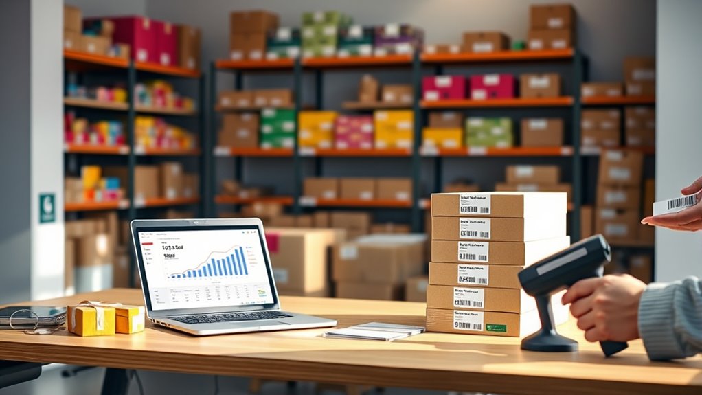 Did you know that effective stock tracking can boost inventory turnover by up to 30%? To manage stock levels well, regularly monitor your inventory and set reorder points. Keep a close eye on sales trends to avoid overstocking or stockouts. Use inventory management tools to automate tracking, so you can respond quickly to demand changes. This helps keep your TikTok shop efficient and guarantees you always have popular items in stock.