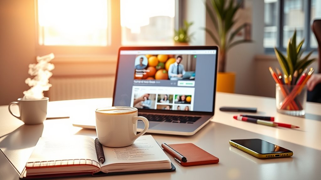 To succeed on Upwork, focus on creating a professional, clear profile that highlights your unique skills and expertise. Use a strong headline and an engaging overview centered on solving clients’ problems. Keep your profile updated with samples, certifications, and positive reviews. Communicate promptly and professionally, tailoring proposals to each project. By combining a standout profile with strategic client engagement, you’ll build a solid reputation and attract quality work—discover how to take it even further as you continue.