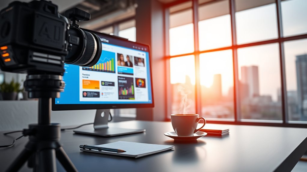 To launch an AI-driven newsletter or blog, start by integrating AI tools that automate content curation, keeping your updates fresh and relevant effortlessly. Use analytics to understand your audience’s preferences and tailor your content accordingly. Automate trending topic suggestions and summaries to save time while maintaining quality. Consistently engaging your readers boosts credibility and loyalty. Keep exploring these strategies to create a dynamic platform that evolves with your audience’s needs.