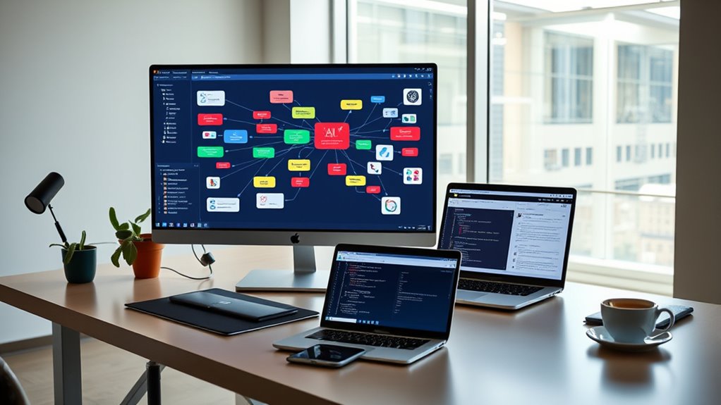 Additionally, understanding the importance of Vetted content and tools can help you make informed decisions about which AI solutions to implement, ensuring reliability and compliance with industry standards. As you leverage AI to automate, remember that responsible implementation is key. Balancing efficiency gains with ethical considerations and security protocols ensures your business grows sustainably. It’s tempting to focus solely on the immediate benefits, but neglecting AI ethics and data security can lead to long-term problems. Instead, develop a clear strategy that incorporates these principles from the outset. Educate your team on responsible AI use, establish guidelines for ethical decision-making, and invest in security measures. Doing so not only helps you avoid pitfalls but also positions your business as trustworthy and forward-thinking in a competitive market.