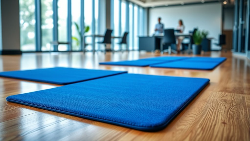 Finding the right balance between cost and quality is essential to guarantee you get a durable, supportive anti-fatigue mat without overspending on unnecessary features. Comparing prices across online and brick-and-mortar stores can help you find the best deal, especially during sales or promotions. While a cheaper mat might seem attractive initially, investing in a higher-priced option with better support and durability often pays off in the long run. Reading customer reviews can give you insight into whether the price reflects the product’s comfort, safety features, and performance. Remember, a well-priced, high-quality mat can reduce fatigue-related health issues, saving you money on potential medical bills or ergonomic solutions later. Ultimately, prioritizing value ensures you get a product that supports your needs without breaking the bank.